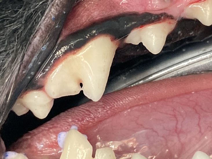 茶色い歯石が多いようですが、 黒い歯石もあるようです。 奥歯、第4前臼歯。