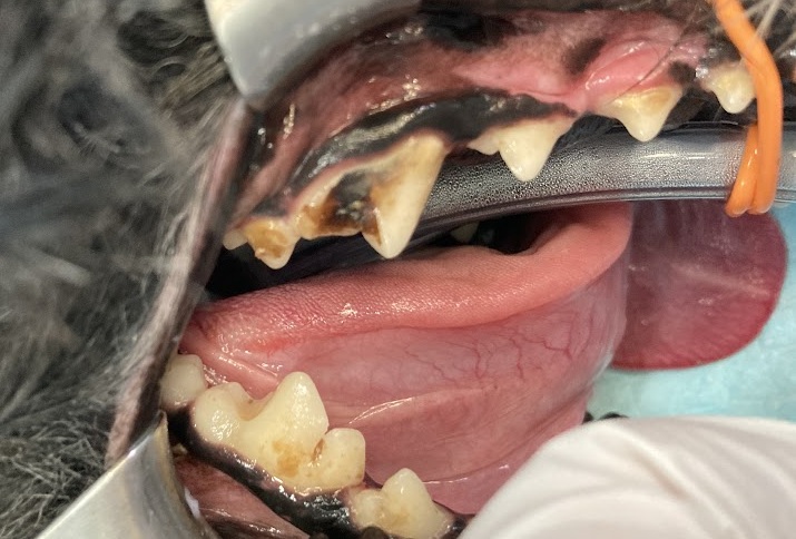 拡大してみたら、 黒い歯石が目立ちます。 きれいにしましょうと言うことで・・・