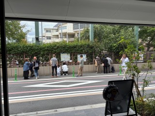 校庭の柵の外にも 人だかり。 保護者らしい。 ただ、 中には外国人観光客らしい人影も。
