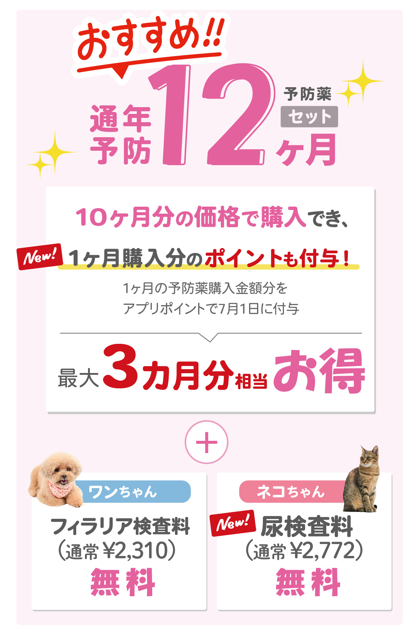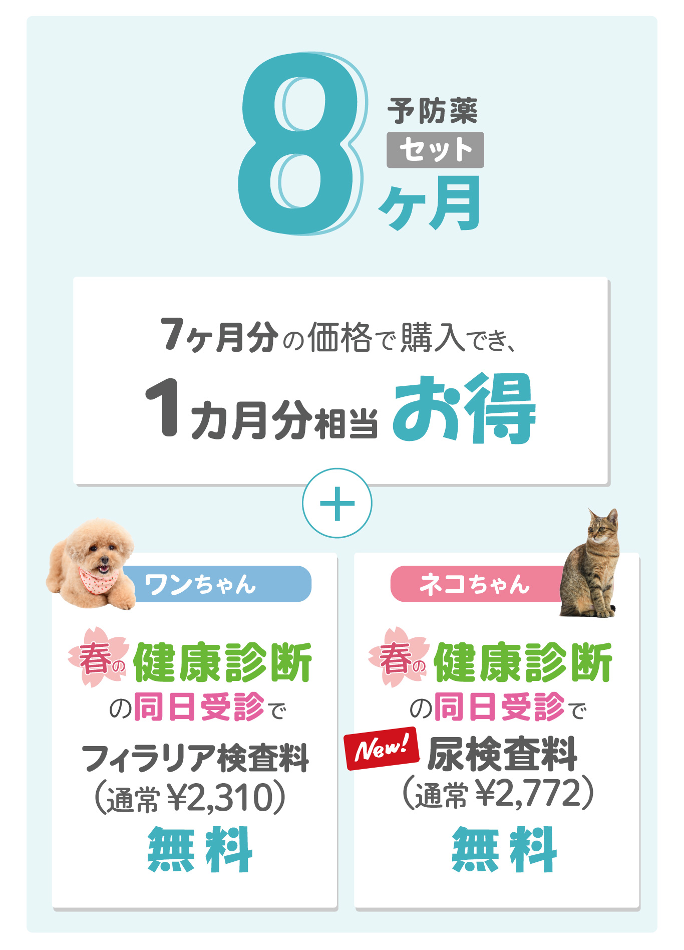 3月1日~6月30日まで、対象の予防薬がセットでお得に購入頂けます。